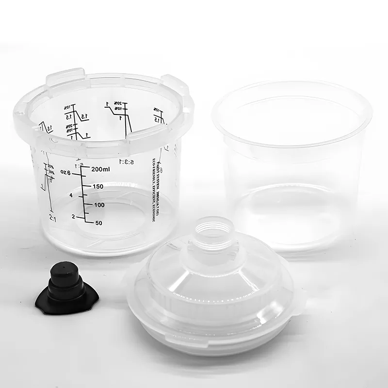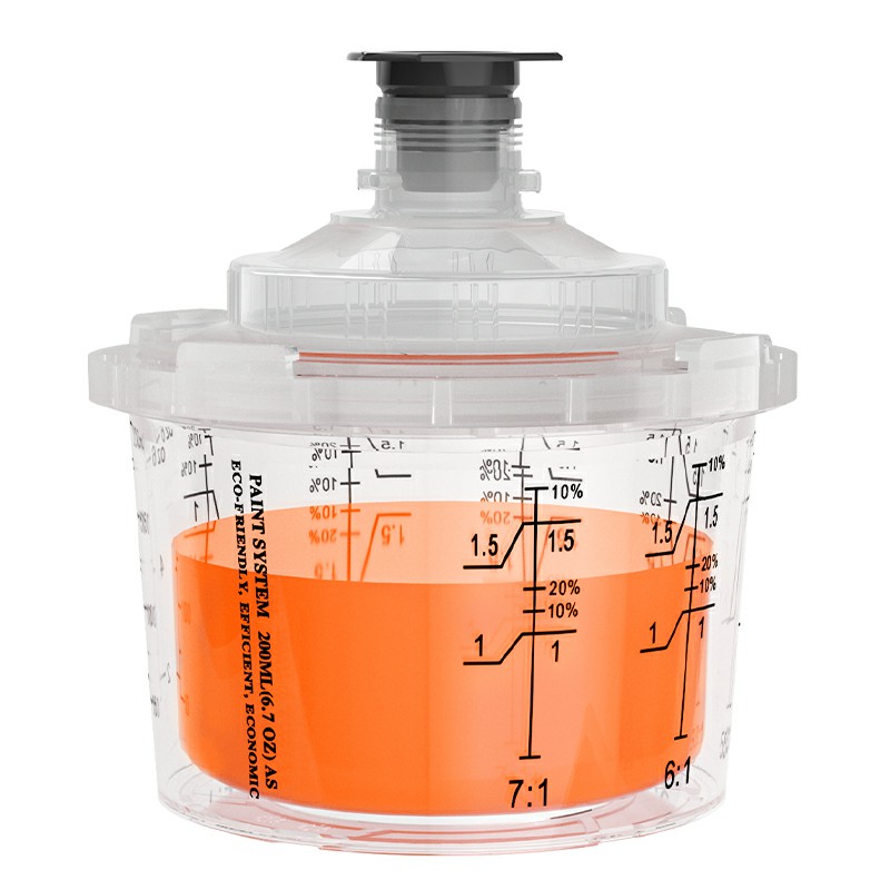 Το κύπελλο ψεκασμού μίας χρήσης 200ml είναι ένα σύστημα μίας χρήσης που έχει σχεδιαστεί για επισκευές 1 πλαισίου, είναι κατάλληλο για περιοχές που απαιτούν 6,8 fl oz (200 mL) ή λιγότερο υλικό. Έχει αναβαθμίσει το σχεδιασμό του εξωτερικού κυπέλλου με βάση τη σειρά AYS1.0. Η ενσωματωμένη εξωτερική κλειδαριά του κυπέλλου κάνει χωρίς κομμάτια κολάρο, τα οποία καθιστούν ευκολότερη τη συναρμολόγηση και την αποσυναρμολόγηση του κυπέλλου ψεκασμού. Το σύστημα Cup Paint Cup της σειράς AYS3.1 είναι το NewST Fun Cup του AYSPAT, το οποίο βελτιώνει σημαντικά την αποτελεσματικότητα και την ποιότητα ολόκληρης της διαδικασίας ανάμειξης, ψεκασμού και αποθήκευσης.