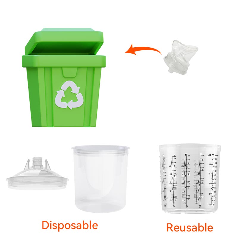 Σχεδιασμένο σύμφωνα με τις πραγματικές ανάγκες,Ποτήρια για πιστόλι ψεκασμού μιας χρήσηςπαρέχει μια ολοκληρωμένη λύση στα παραδοσιακά σημεία πόνου σε κύπελλα βαφής, παρέχοντας μια συνολική επανεφεύρεση εργαλείων επίστρωσης που είναι αποτελεσματικά, οικονομικά, υψηλής ποιότητας και φιλικά προς το χρήστη.